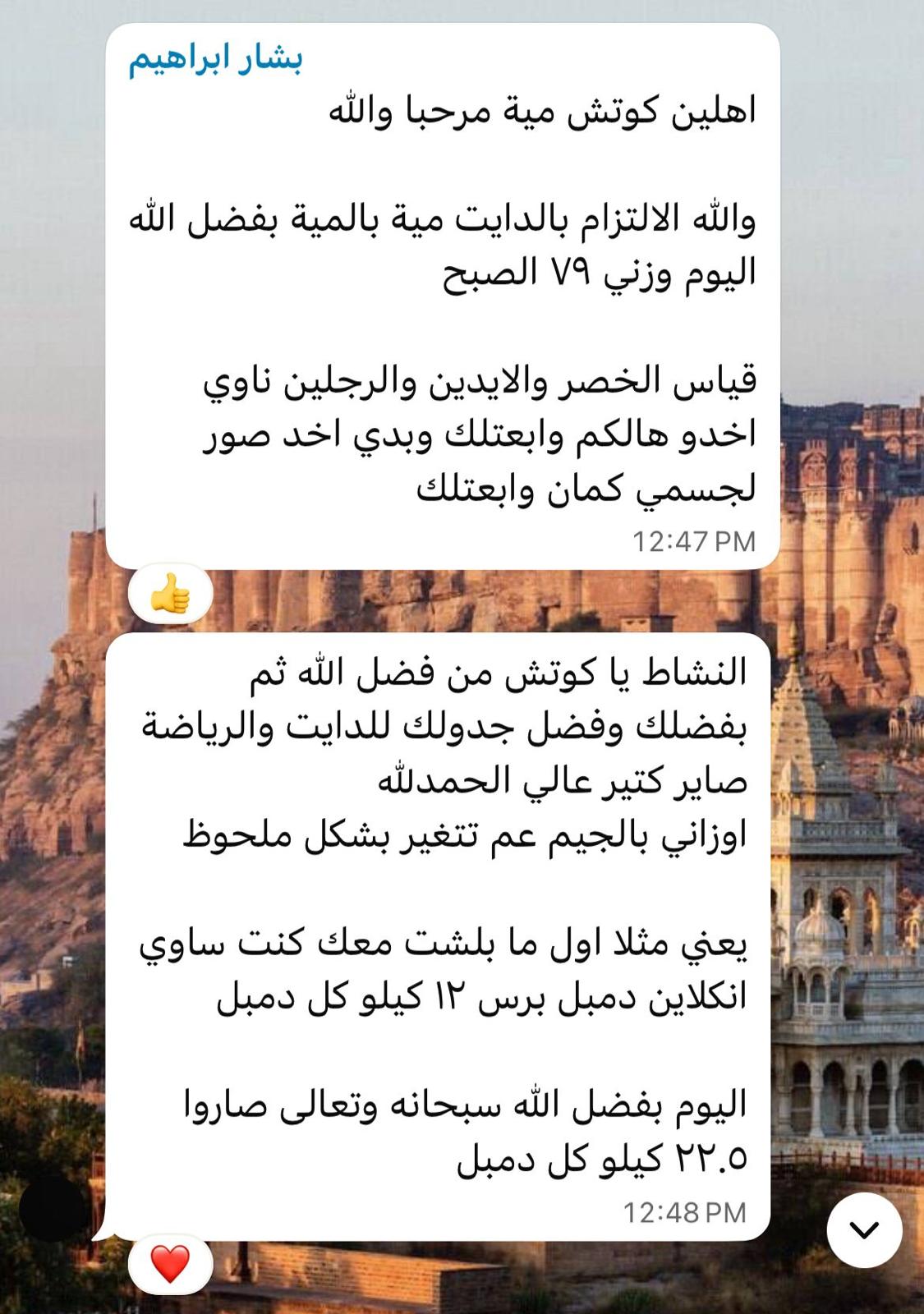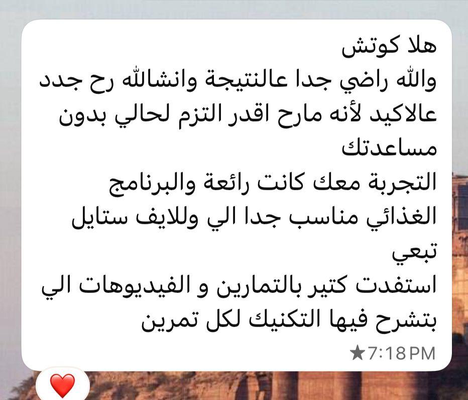 الدهون العنيدة ببطني كانت مسببتلي مشكلة نفسية, وكل ما بشوف نفسي على المرايه ما بيعجبني شكل بطني ، بس مع تشجيع الكوتش أحمد والتزامي بالخطة و الاستمرارية عليها قدرت اتخلص من هي الدهون و وأوصل لهدفي وأغير شكل جسمي كلياً